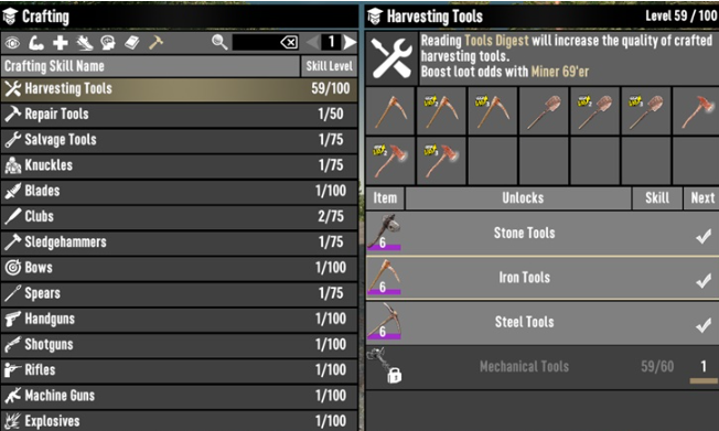 The new armor and weapons you craft are used to combat the increased damage from the tough zombies.