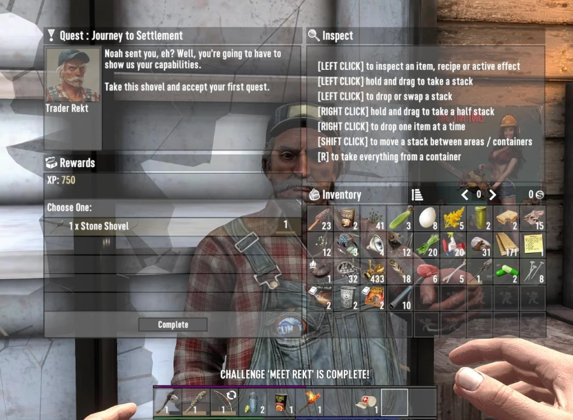 Tutorial quests are the very first quests you accept when you start a new game. These quests guide the new player through the basic tasks of survival, such as punching a tree, crafting a stone axe, and setting up a campfire.