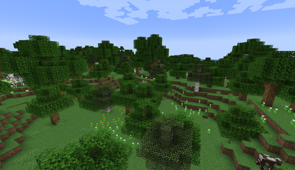The Forest biome is a basic woodland biome. It is filled with oak trees and birch trees, making it a great starting point for new players. It is a good source of wood and other resources.
