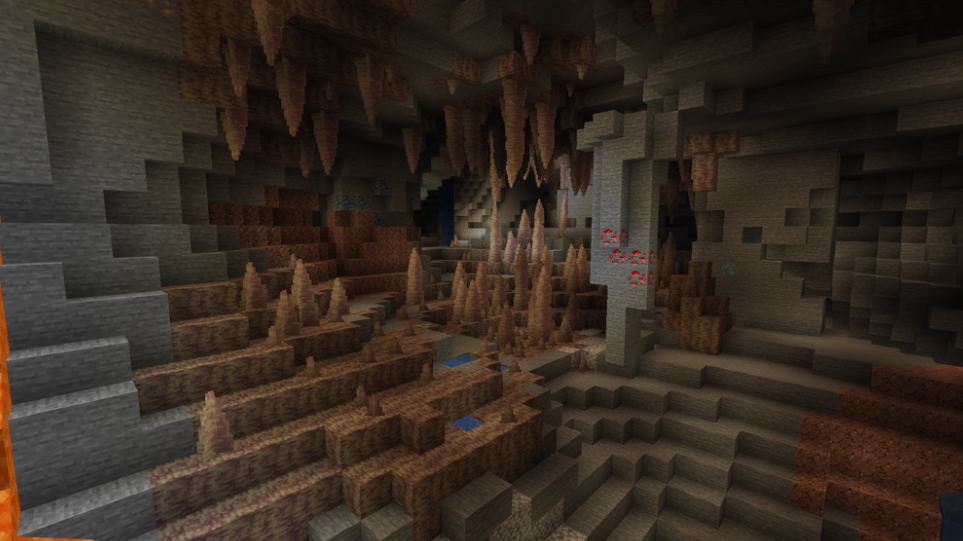 This is a cave biome characterized by large stalactites and stalagmites made of dripstone. These caves are a great source of cobblestone and other stone materials.
