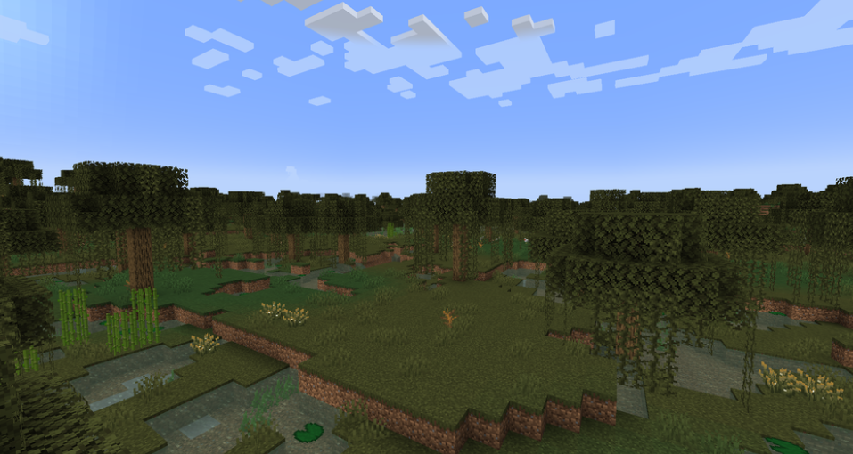 The Swamp biome is a wetland biome. The Swamp biome is characterized by shallow bodies of water and dense vegetation, including willow trees and lily pads.