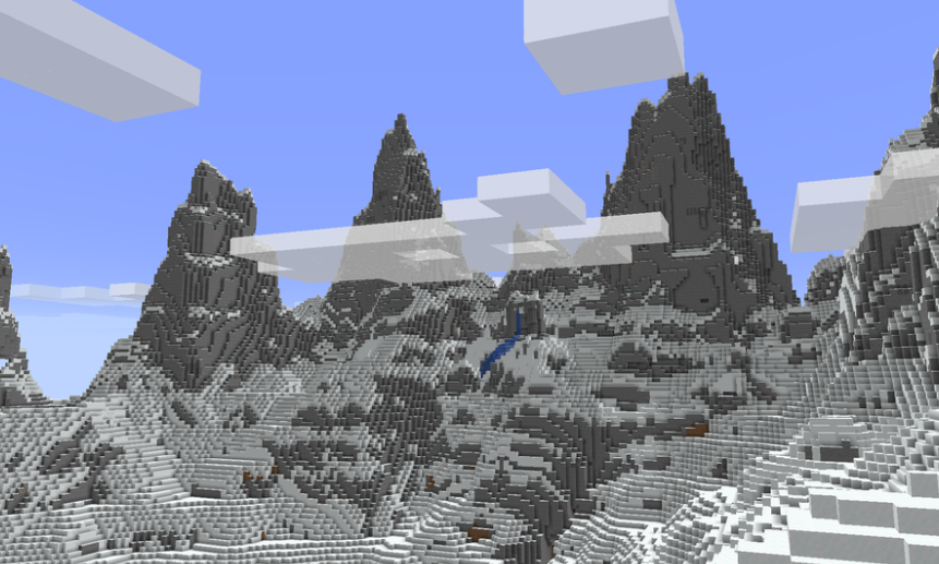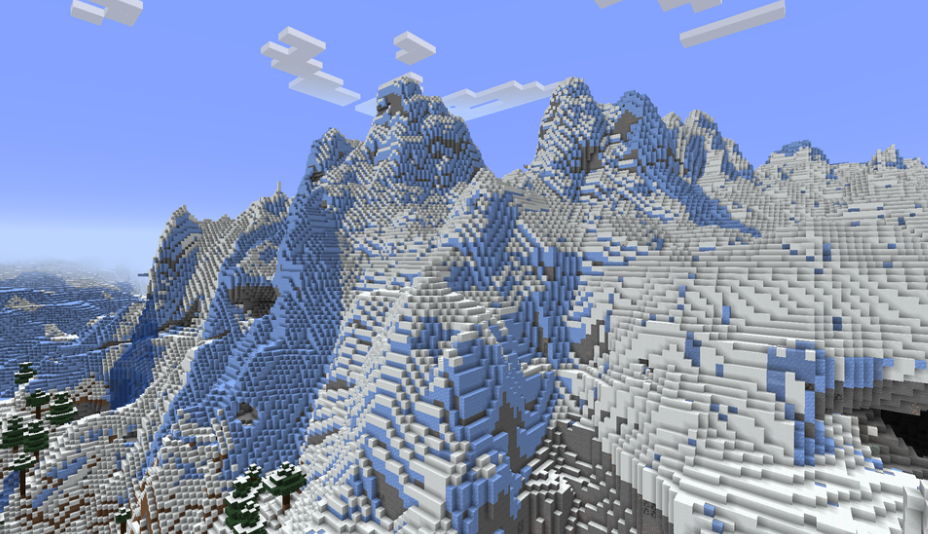 The Jagged Peaks biome is a variant of the mountain peak biomes. It is characterized by very tall and jagged peaks with steep cliffs.