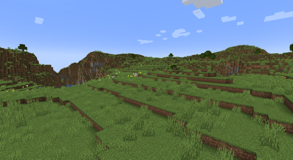 The Meadow is an elevated grassy biome, part of the grassland biomes. It is characterized by flat, grassy terrain and a variety of flowers. It is a great place to build a house.