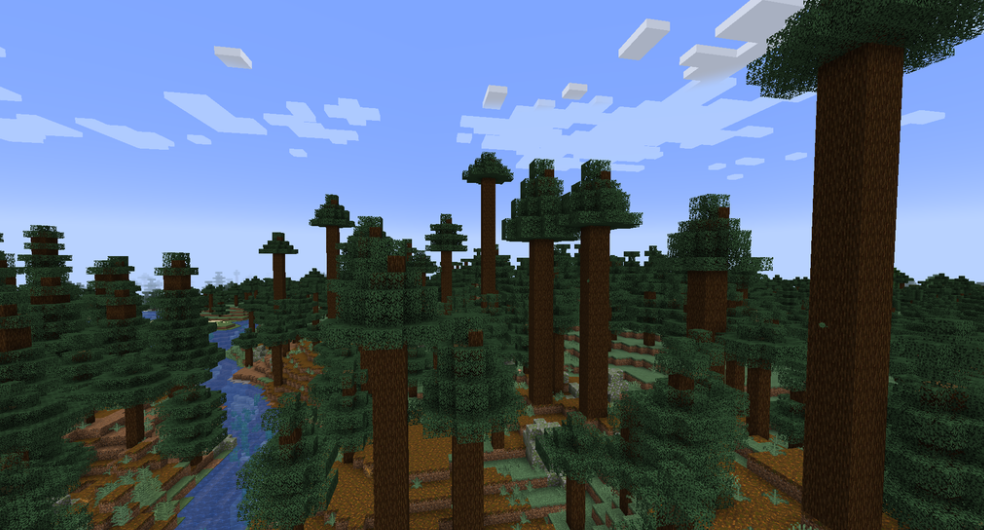The Old Growth Pine Taiga is a type of taiga biome. It is characterized by very tall spruce trees, and it is a good source of old growth pine taiga wood. This is also a giant tree taiga hills biome.