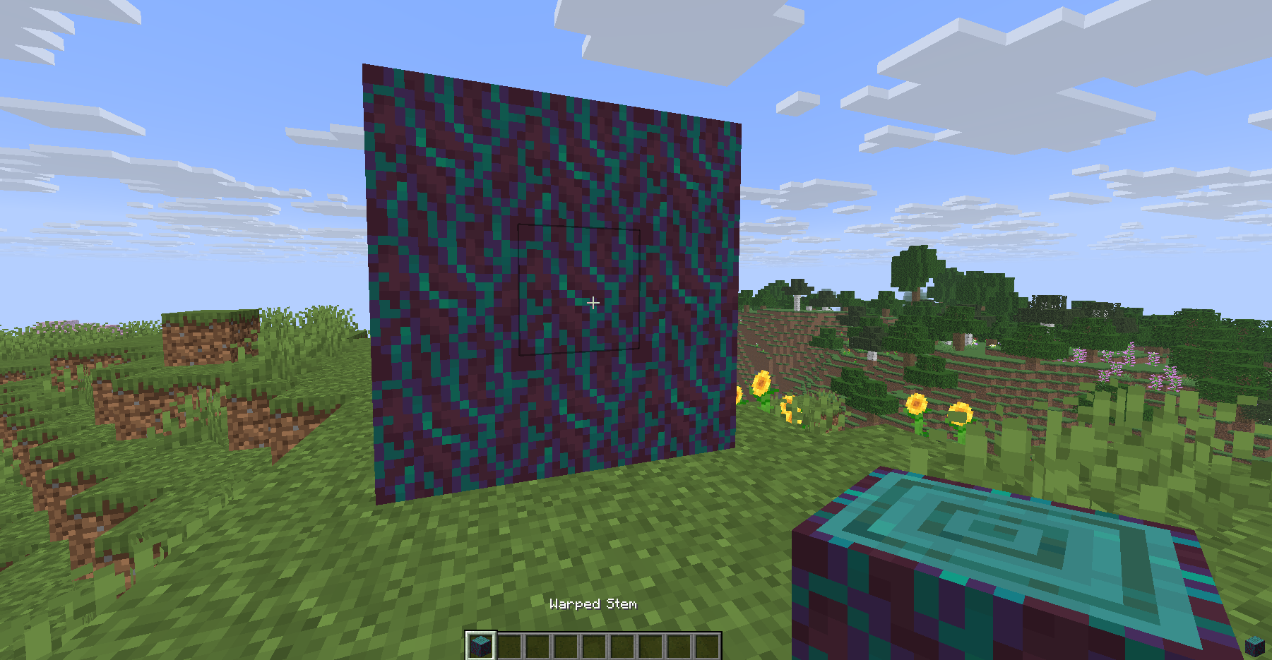 Where to find it: Warped stems, which are the equivalent of logs, are found in the warped forest biome in the Nether. This biome is easy to spot because of its surreal, blue, and cyan color palette and glowing fungi. This wood type is one of the nether exclusive woods, meaning it can only be found in this dimension.