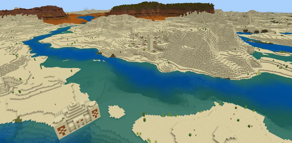 For a fast and secure start, this desert village and Badlands Minecraft seed is perfect. It features multiple plains villages and desert pyramids near the spawn point. You will have no shortage of early food, gold, and buried treasure.