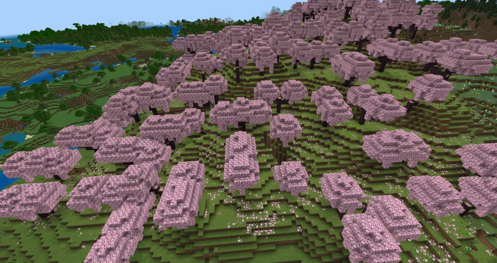This Minecraft seed drops you right in the middle of a beautiful cherry grove biome, filled with stunning pink cherry blossoms. You will have plenty of wood for a quick start to building your first home. This is the perfect spawn point for architects who want a visually pleasing spot to set up their base.
