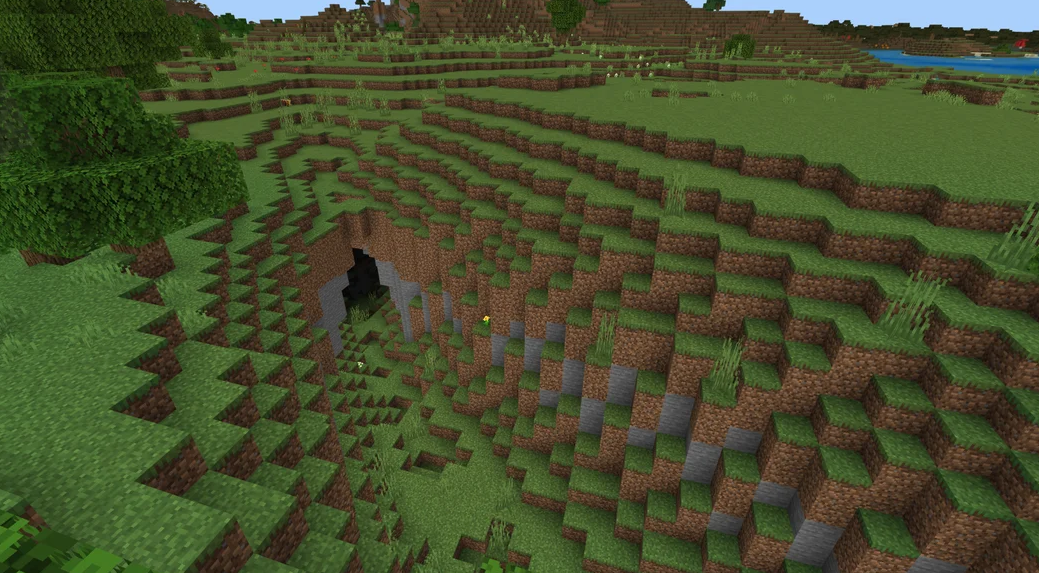 This is one of the best Minecraft seeds for quick resource gathering. You will spawn next to an opening that leads directly into a monumental, biome-sized cheese cave system. This vast cave network goes all the way down to the level where you can find diamonds, accelerating your progression.