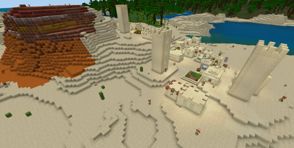 This Minecraft seed is perfect for a quick start because it places you right in front of a picturesque desert village. You will have immediate shelter and supplies, allowing you to start trading and mining quickly. This is one of the best seeds for minimizing early-game struggle.