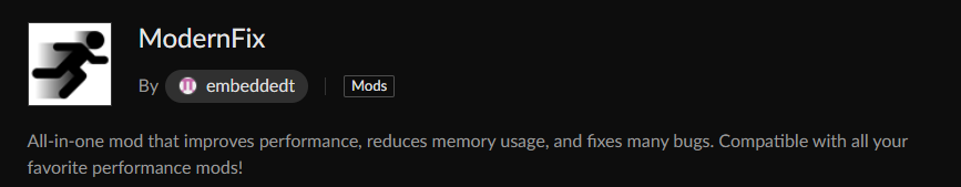ModernFix is a general optimization mod that acts as an all-in-one cleanup tool.