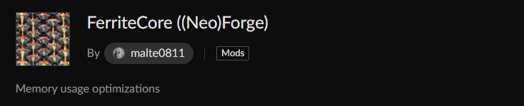 What Experts Say: FerriteCore optimizes memory consumption and reduces RAM usage by up to 45% compared to Vanilla. This is a great foundation for any collection of optimization mods and fixes the problem of running out of RAM.