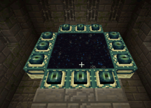 After you have found the stronghold and have found the end portal room, you must complete the end portal. The end portal will have a total of 12 frames, and it will be missing some eyes of Ender. You must place an eye of Ender in each missing frame to activate the end portal. Once you have completed the portal, it will turn black, and a new dimension will appear. The end portal will lead you to the End dimension, the home of the Ender Dragon.