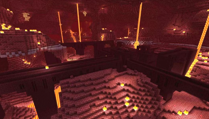 Nether Fortresses are large structures made of Nether Brick blocks. They have long, straight bridges and large rooms.