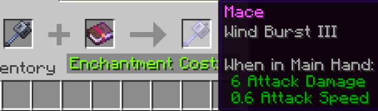 Wind Burst is a unique and exciting enchantment for the mace. When you hit a mob with a smash attack, the Wind Burst enchantment launches you and the enemy up into the air. This gives you another opportunity to perform another smash attack and deal even more damage.
