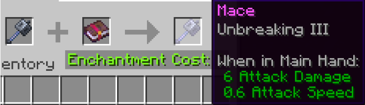 Unbreaking can be incredibly useful. With Unbreaking, your mace durability will last longer, and you will not have to worry as much about it breaking. This is a standard enchantment for any weapon and is very helpful for the mace, as it takes a while to gather the ingredients for another.
