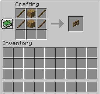 A wooden fence gate in Minecraft is crafted with sticks on the sides and wood planks in the center of the crafting table, as shown in the image below. Unlike a standard fence, the gate can be opened and closed, letting players and mobs pass through while keeping animals secure. It connects seamlessly to wooden fences, making it an essential building block for farms, bases, and other structures.