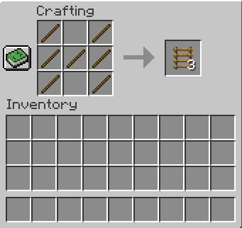 Crafting a ladder in Minecraft works the same in both Bedrock Edition and Java Edition. Using a crafting table, arrange seven sticks in an “H” pattern to create ladders. This is an example of how to craft a ladder in Minecraft.