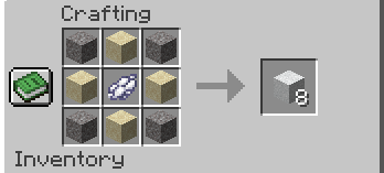 You will get eight blocks of concrete powder from each crafting recipe. This process of creating concrete powder is how all concrete begins. Remember, concrete powder is affected by gravity, just like sand and gravel. If you place the concrete powder block in the air without a block below it, it will fall. This is a very important thing to remember when creating concrete powder. The newly crafted concrete powder is a fragile block that is affected by gravity.