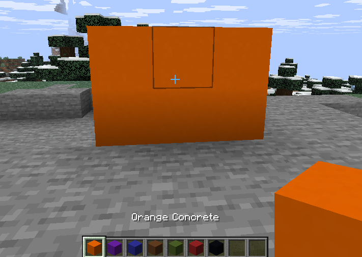 The dye made from mixing red and yellow dyes made from flowers is a good way to get orange concrete. The crafting recipe is the same for all colors; you just need to swap out the dye. To craft concrete powder, open your crafting table and arrange the materials in any pattern on the crafting table grid. A crafted concrete powder block is your first step to getting your final concrete blocks.