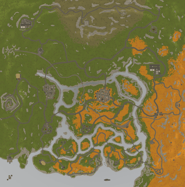 This large map was the first to have a large deadzone that can kill players without a gas mask. It was also the first to introduce NPC quests, which provide players with items, experience, and ranks, often involving interactions with the Coalition faction. Russia features multiple biomes, is rated as the best vanilla experience, and is known for its vastness and metal resources, making it ideal for building huge bases.